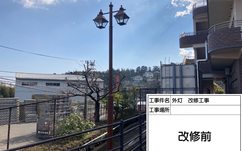 横浜市内で設備管理を受託している老人ホームの外灯の管球交換工事を行いました。