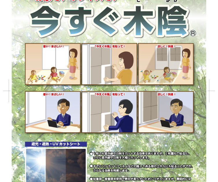 お家やオフィスで、すぐにピタッと貼れて『いますぐ木陰』の環境になります。