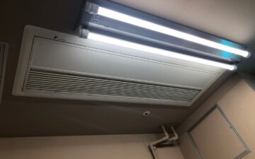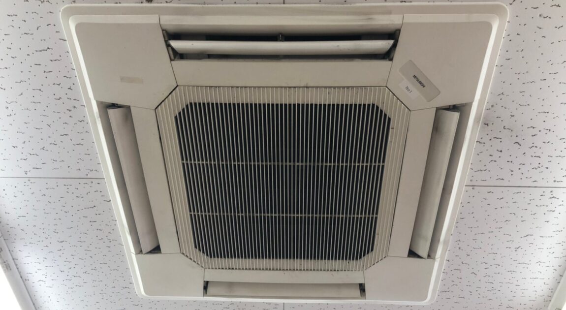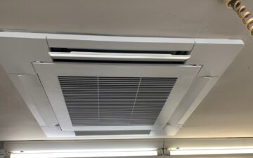 都内のドラッグストアで天カセのエアコンから水漏れでお客様へのクレームになっているとのことで当日対応を実施しました。